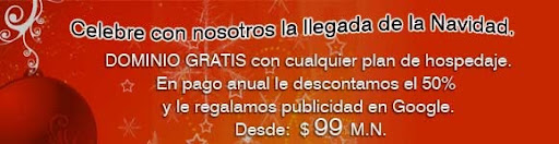 Para el agrado de todos, y en estas fiestas tenemos que ahorrar, hasta finales de diciembre, tenemos la promoción de un 50% de descuento y el dominio gratis, en todos nuestros paquetes de hosting anual, para mas información, no duden en contactarnos.